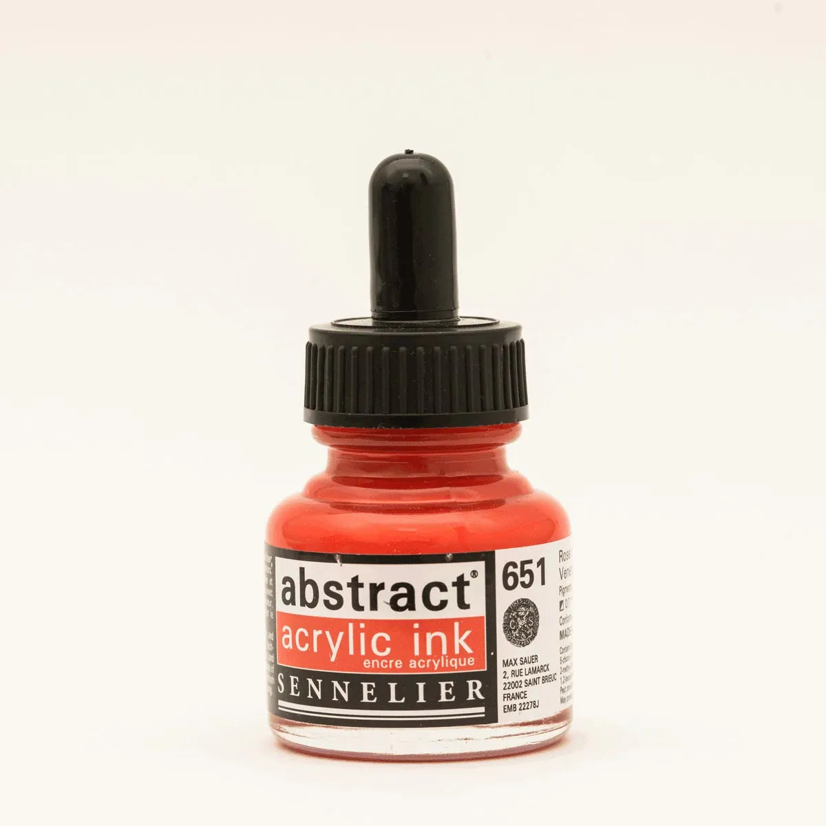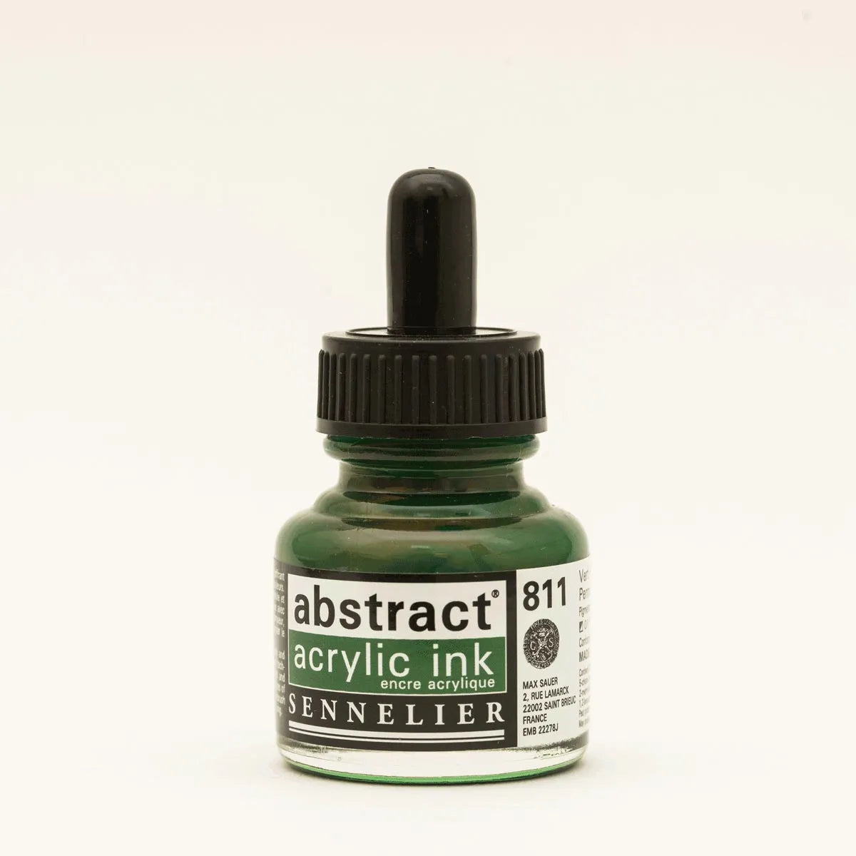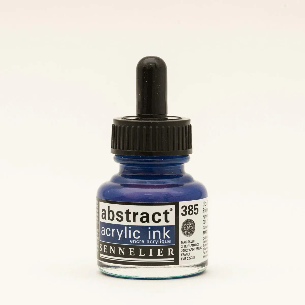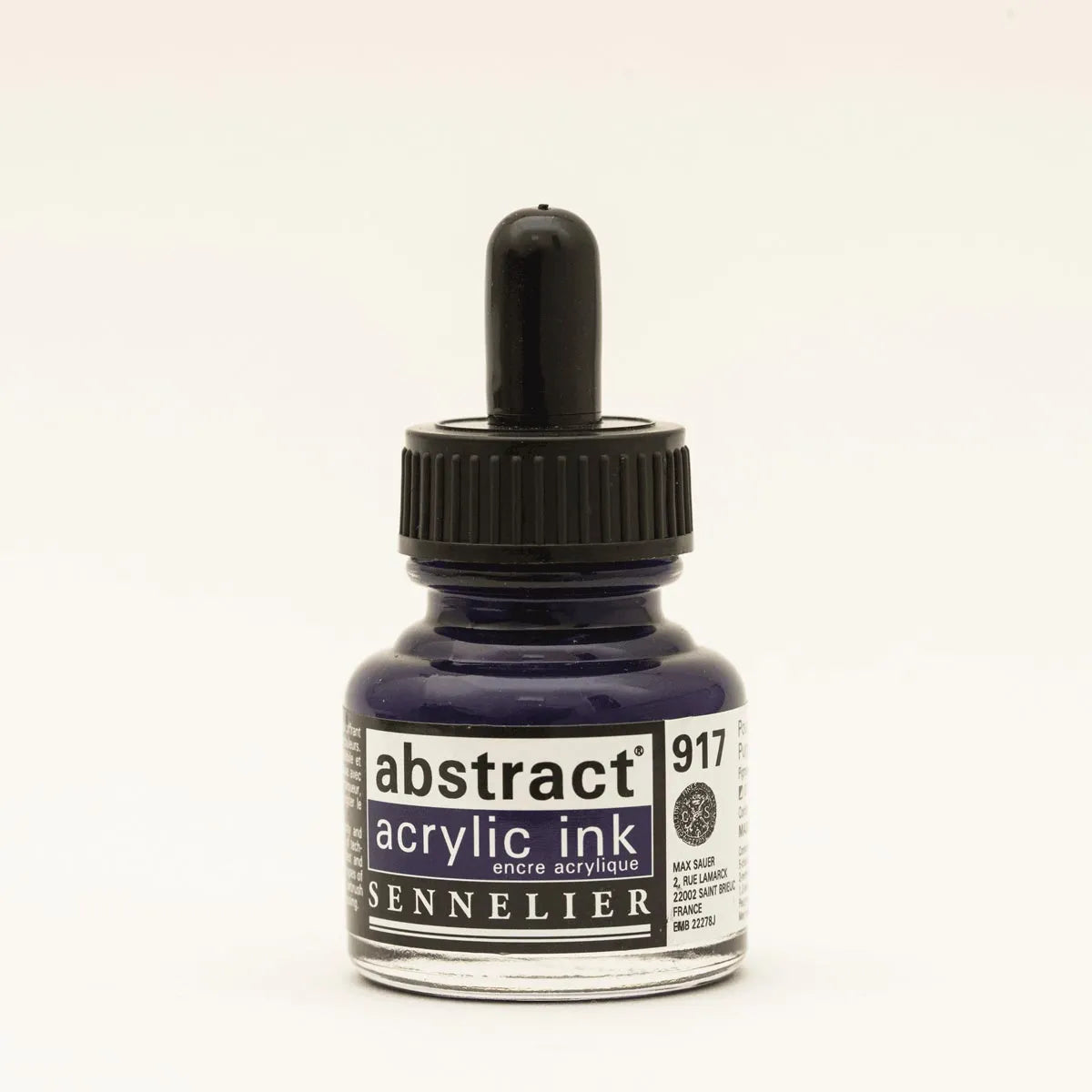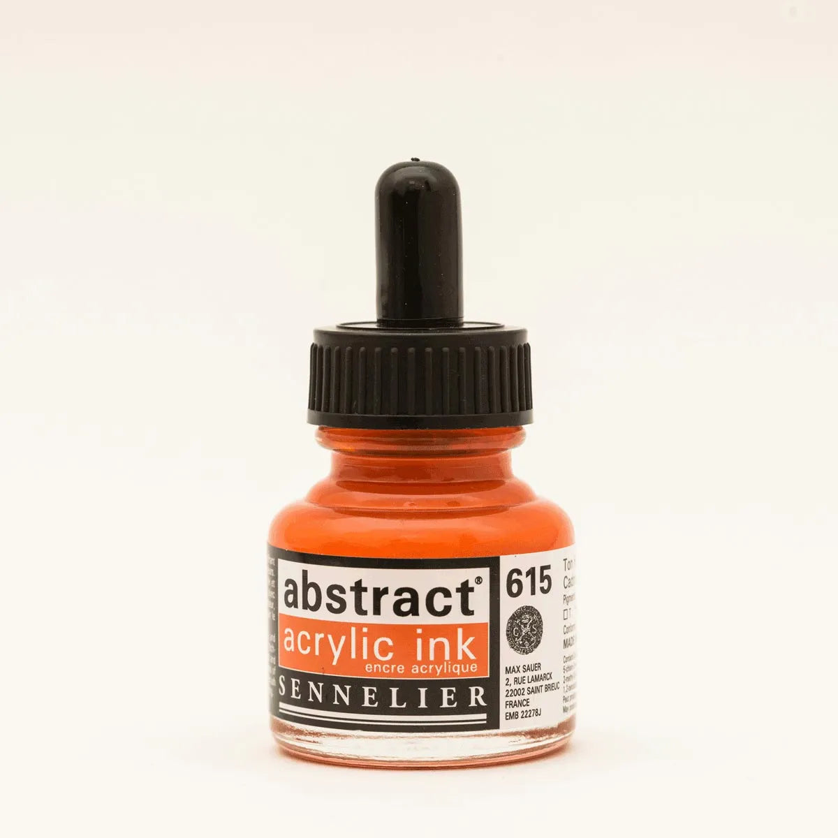 Sennelier Abstract Acrylic Inks come in 43 shades, each in a 1 fl. oz bottle. They are highly pigmented, transparent, water- and light-resistant, and made with acrylic polymer, all without cadmium.