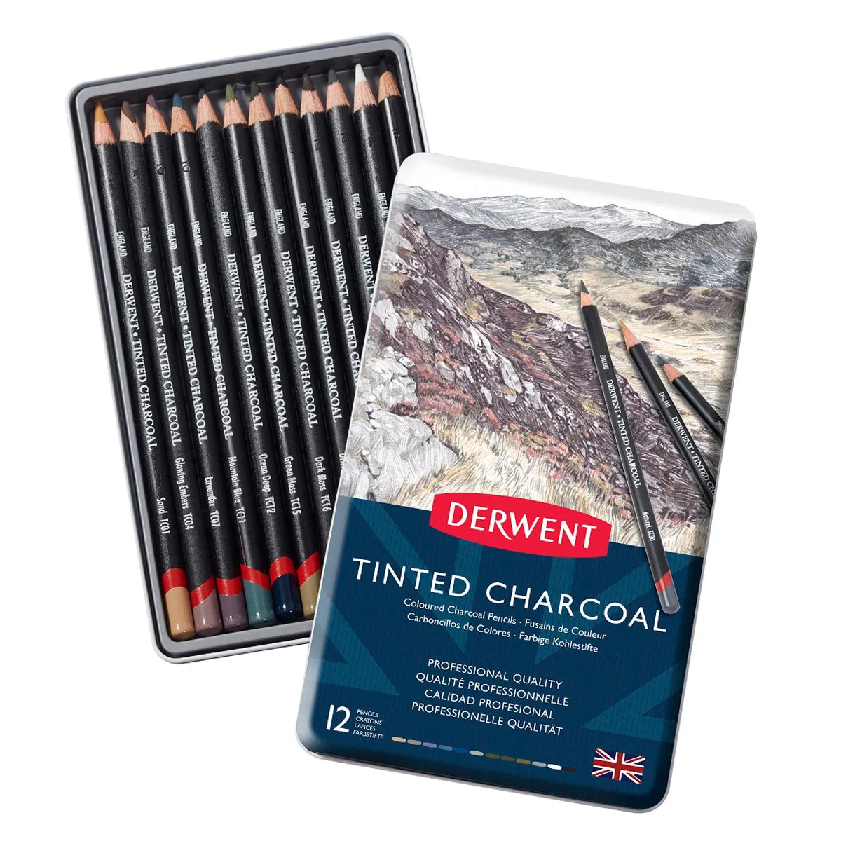 Derwent Tinted Charcoal Pencils offer a contemporary twist on a traditional drawing medium. They blend natural charcoal particles with a hint of pigment and fine clays, broadening creative possibilities. These tinted shades blend smoothly and smudge effortlessly to produce rich, vibrant hues. Unwanted colour can be easily erased, and its natural water solubility enables subtle wash effects.