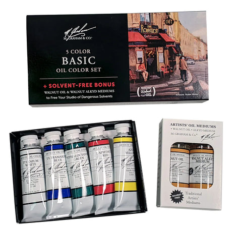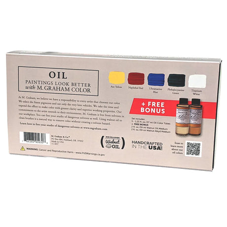 M Graham Artists' Oil Paint Basic 5 Colour Set + Free Bonus